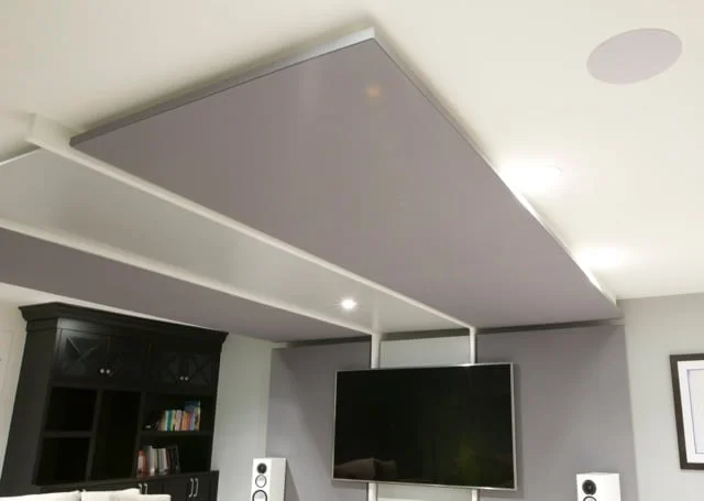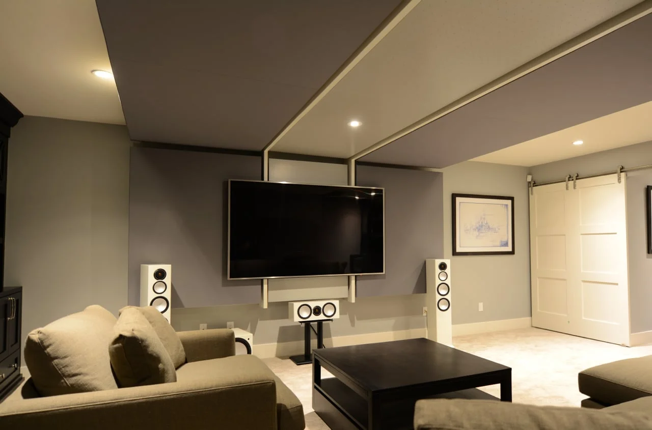 Home theatre room - home theatre / family room with wall and ceiling sound absorbing panels
